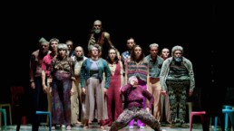 The electro-Latin sounds created ad hoc by Müller & Makaroff, a Swiss-Argentine tandem who founded in Paris in 1998 the Gotan Project music group that pioneered the electronic reinvention of the tango, evoke here a convivial “guinguette” dimension, skillfully rendered by set designer Benjamin Lebreton, in which one can hear the lyrics of MC and urban poet Fafapunk. Thus we reflect on the inexorable passage of time and the transformation of bodies, because beautiful dance is universal and transgenerational.